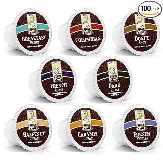 100ct Variety Pack for Keurig K-cups, 8 Assorted Single Cup Sampler 20% more coffee per cup by Bradford Coffee